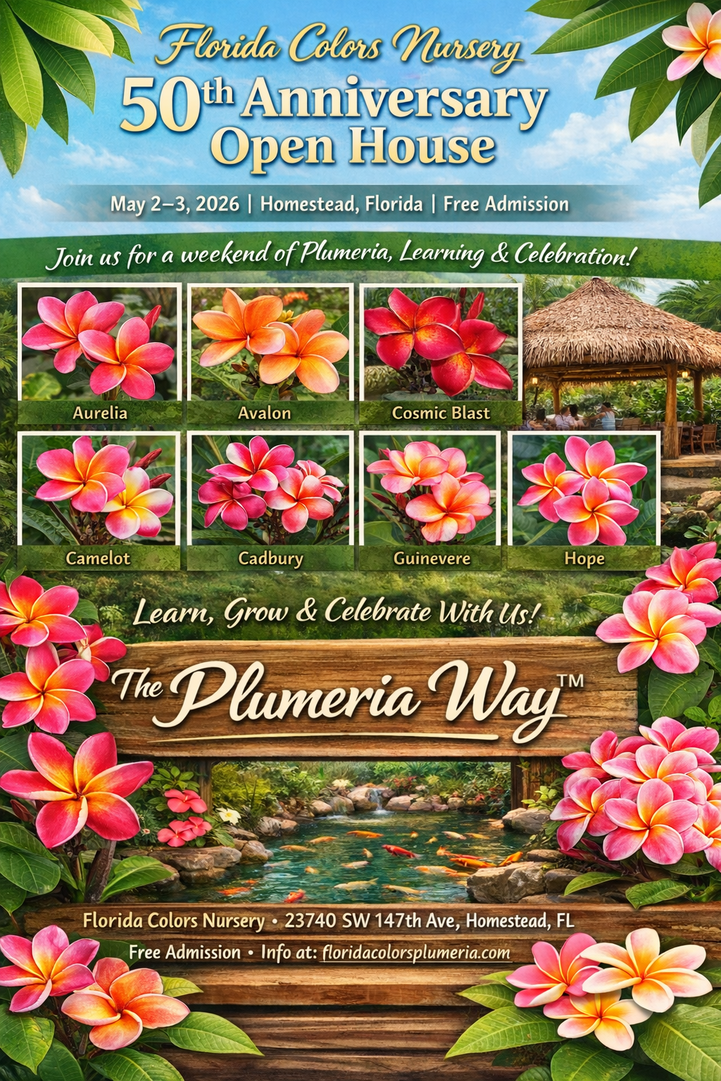 Join us for two days of plumeria, learning, community, and celebration as Florida Colors Nursery marks 50 years of growing, sharing, and teaching.